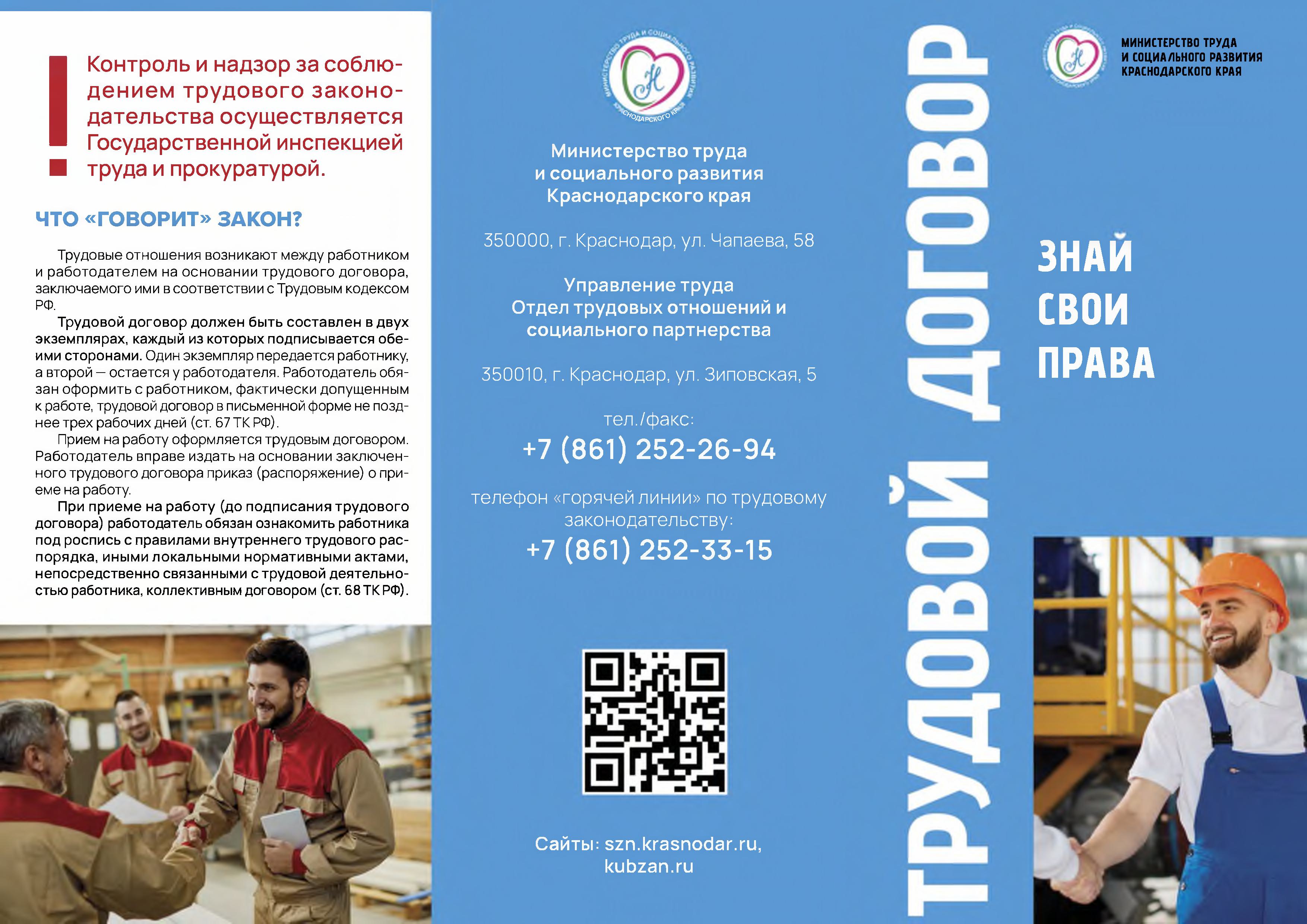 телефон "горячей линии" по трудовому законодательству: +7 (861) 252-33-15